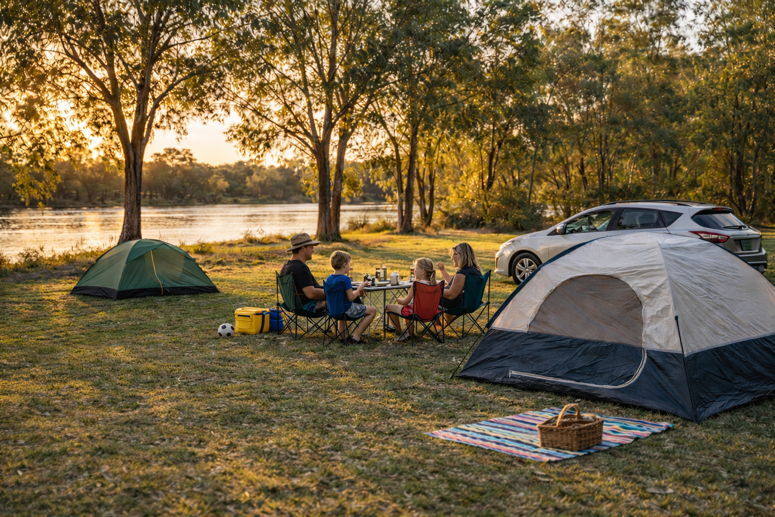 Choose powered comfort, classic unpowered camping, or low-cost options—easy, family-friendly, and riverside.